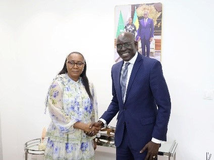 Enfin, dans la continuité de ces échanges, la patronne de la diplomatie a reçu S.E.M. Mame OUMAR THIAW, Ambassadeur de la République du Sénégal près la République gabonaise venu en visite de courtoisie. Le diplomate sénégalais est venu présenter ses félicitations à Madame Marie-Edith TASSYLA-YE-DOUMBENENY. Ceci magnifie l’excellence de l'axe Libreville-Dakar.